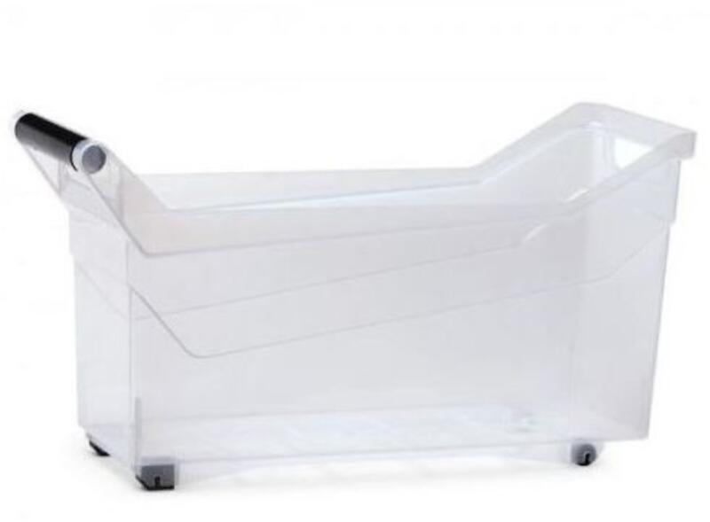 NUK4L 5905197981802 TÁROLÓ DOBOZ Műanyag doboz Átlátszó kosár, univerzális méretekben. Gurulók hátul. Csúszásgátló dugók elől. Kényelmes fogantyúval. Megkönnyítik a mindennapi tárgyak, élelmiszerek, háztartási vegyszerek tárolását. A mosogató alatti konyhaszekrényben könnyű hozzáférést biztosít a vegyi anyagokhoz. Megakadályozza a folyékony anyagok, fertőtle