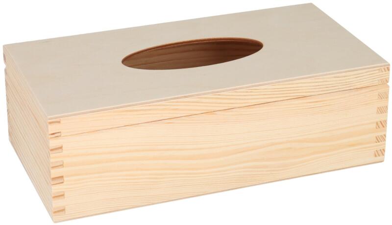 Ebbe a papírzsebkendő tartóba nagyon könnyű betenni egy új csomag papírzsebkendőt, mivel a fedele kinyitható. A doboz teljesen natúr, ezért bármit ráírhat vagy rárajzolhat partnerével vagy a gyerekeivel együtt. A doboz borovifenyőfából készült, az alsó rész rétegelt lemezből. A doboz mérete körülbelül 100 zsebkendő számára alkalmas.