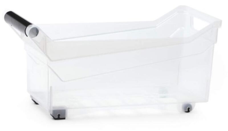 NUK3L 5905197981772 TÁROLÓ DOBOZ Műanyag doboz Átlátszó kosár, univerzális méretekben. Gurulók hátul. Csúszásgátló dugók elől. Kényelmes fogantyúval. Megkönnyítik a mindennapi tárgyak, élelmiszerek, háztartási vegyszerek tárolását. A mosogató alatti konyhaszekrényben könnyű hozzáférést biztosít a vegyi anyagokhoz. Megakadályozza a folyékony anyagok, fertőtle