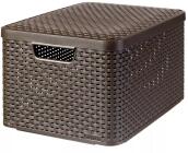 Curver Style "L" méretű rattan kosár fedéllel 30L sötétbarna (205861) A Style termékcsalád l-es méretű, tetővel is rendelkező kosara egy univerzális tárolási megoldás, amely használható a nappaliban, konyhában, fürdőszobában, vagy a hálószobában is. Tökéletes megoldás kisebb termékek tárolására, például kulcsoknak, távirányítóknak, kozmetikumoknak, fűszerekne