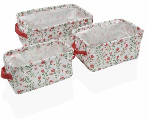 A tárolókosarak virágmintás kivitelezése modern és letisztult megjelenést kölcsönöznek otthonunknak. Ráadásul a minta elegáns így hosszú távon is megfelelő megjelenést biztosít a helyiségnek. Minőségi anyagból készültek, így tartós és strapabíró felhasználást garantálnak. A kosarak Egyszerűen összecsukhatók, amikor nincsenek használatban, így praktikusan táro