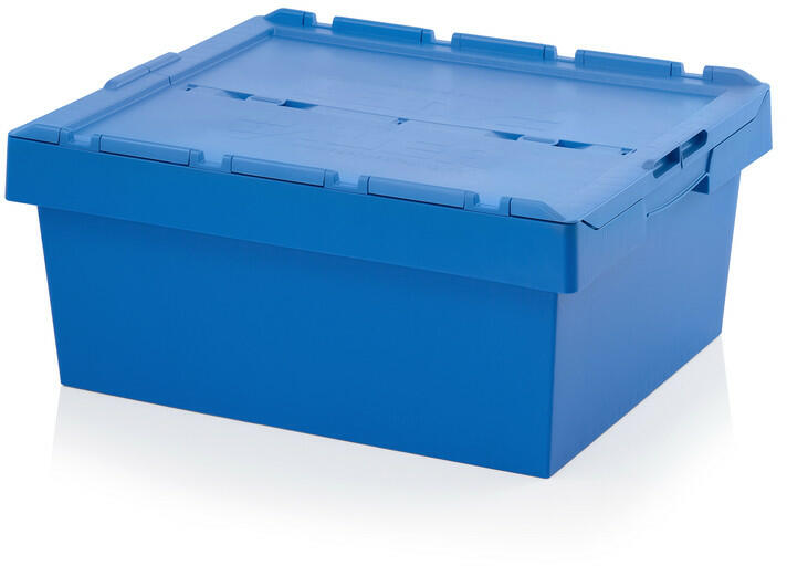 Fedeles, zárható, kék szállító láda. Kiváló minőségű műanyag termék, nagy stabilitású oldalfallal, plombálható fedéllel. Üresen a ládák egymásba rakhatóak, így kisebb helyi... Fedeles, zárható, kék szállító láda. Kiváló minőségű műanyag termék, nagy stabilitású oldalfallal, plombálható fedéllel. Üresen a ládák egymásba rakhatóak, így kisebb helyig