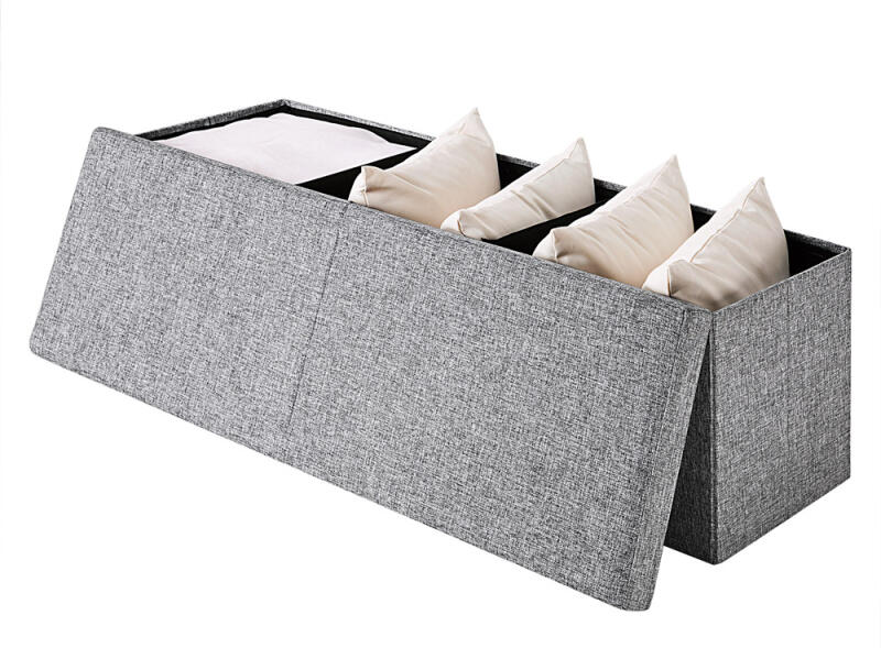 A 131 literes tárolódobozos pad nagyon tágas és praktikus tárolási segédlet játékoknak, magazinoknak, könyveknek, párnáknak, ruháknak és sok másnak. A pad kerete robusztus MDF farostlemezből készült. Az ülés extra erős, mindkét oldalról nyitható. Így gyorsan és kényelmesen eltávolíthat vagy behelyezhet tárgyakat a teljes ülés eltávolítása nélkül. A pad belseje