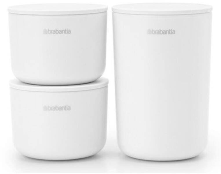 Az apró dolgok tesznek minket boldoggá. Mint ez a három tárolóedény Brabantia. Két vidám tároló a hajcsatoknak, fülbevalóknak és minden más apróságnak, amit együtt akar tartani. A nagyobb tartály ideális vattapálcikák stb. számára.