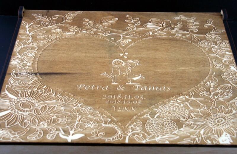 Ajándékdoboz esküvőre, írd meg milyen nevet és dátumot szeretné rá. Anyaga: rétegelt lemez Mérete: 9cm x 36cm x 22,5cm; 6 mm vastag