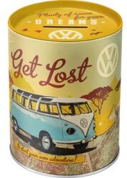 Fémből készült persely. Magasság: 13 cm. Átmérő: 10 cm. Könnyen eltávolitható fedéllel, így a persely többször felhasználható!