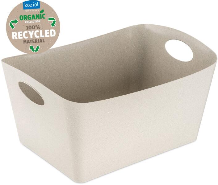 Tárolódoboz BOXXX L a Recycled kollekcióból sokoldalú és praktikus kiegészítője a fürdőszobának. De ne aggódjon, otthonában sokféle helyen és sokféle célra használhatja. Használja a fürdőszobában törölközők vagy ágyneműk tárolására vagy mosogatótálként, továbbá fehérneműk és zoknik gyűjtésére és rendezésére, kefék, szivacsok, magazinok, kozmetikumok v