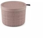 Curver Jute kerek doboz tetővel 2L púder rózsaszín (255197) A Jute termékcsalád kerek, tetővel rendelkező kosara tökéletes választás mindenki számára, aki praktikus és stílusos otthoni rendszerezőt keres. Ez az esztétikus termék tökéletes alternatívát jelent a kozmetikumok tárolására a fürdőszobában, a konyhai kiegészítőknek, vagy akár a nappali dekorációinak. Az
