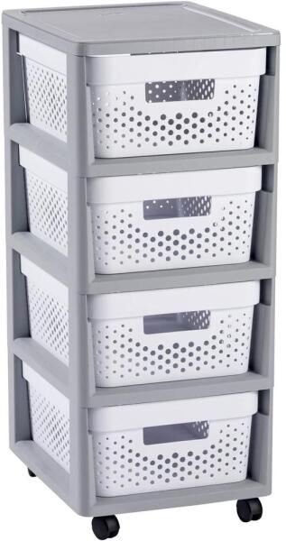 Curver Infinity fiókos tároló 4 x 11 liter Otthoni kellékek egyszerű rendbetétele. Legyen végre minden apróságnak valami helye! A szekrény négy nagy méretű fiókból áll, amelyeknek kényelmes fogókája van. Egyszerű, skandináv stílusának köszönhetően a szekrény ideális a fürdőszobába, hálószobába, nappaliba és gardróbba is. A kényelmes használatot annak kerekei i