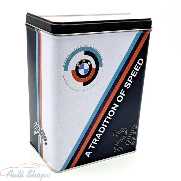 BMW MOTORSPORT " A TRADITION OF SPEED " fém doboz tároló tárolódoboz BMW szerelmeseinek, Autórajóngóknak Minden Nostalgic-Art tárolódoboz masszív fémből készült, és kiváló minőségű nyomatokkal rendelkezik belül és kívül. Gyönyörű, lekerekített forma , alkalmas autórajongóknak és dekorációnak egyaránt. A nagyszerű vintage motívum sokáig megmarad. Általános le