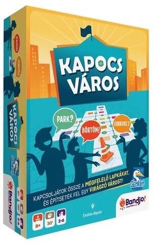 A Kapocsváros egy könnyed, asszociációs, kooperatív családi társasjáték, ahol a játékosok közösen próbálják kitalálni, hogy polgármesterük melyik épületet kívánja a telekre helyezni…A játék során 6 fordulón keresztül egyre bonyolultabb várost építetek, miközben a helyszínlapkák között kapcsolatokat alakítotok ki. A cél: minél több kapcsolat létrehozása,