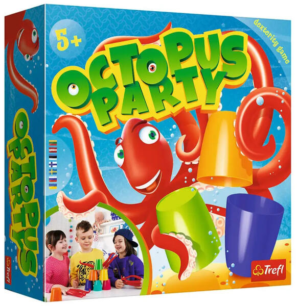 Octopus Party társasjáték Trefl Az Octopus Party társasjáték az egész család számára izgalmas lehet. A Ravasz Polip új, dinamikus játékra hív, melyben a játékosok műanyag poharakból kell, hogy felépítsék a kártyákon szereplő építményeket - mindezt gumi csápok segítségével. Aki a leggyorsabb, az lesz a nyertes. Egyszerűnek tűnik? Válaszd a nehezített pályát a k