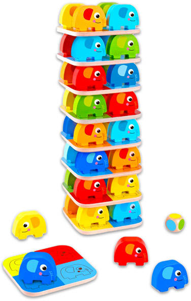 A rakosgató játék több életkort is lefed. A játék segítségével a kisebbek megtanulhatják a színeket, a nagyobbak pedig ügyesen forgatva többfajta tornyot építhetnek. A játékot kézzel festették vízbázisú festékkel, a ragasztó pedig nem tartalmaz formaldehidet. A játék csomagolási méretei: 10 x 10 x 38 cm.