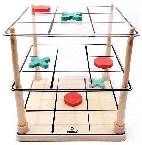SvooRetro 3 dimenziós amőba Kiváló minőségű társasjáték kicsiknek és nagyoknak. A klasszikus Tic-tac-toe játék mindenki számára ismert, könnyű szabályai miatt már óvodás kortól játszható. A gyerekek könnyedén megismerkedhetnek a számokkal, fejlődik megfigyelőképességük, logikai gondolkodásuk. A játék a hagyományos amőba játékon alapul, a játéktér azonban 3