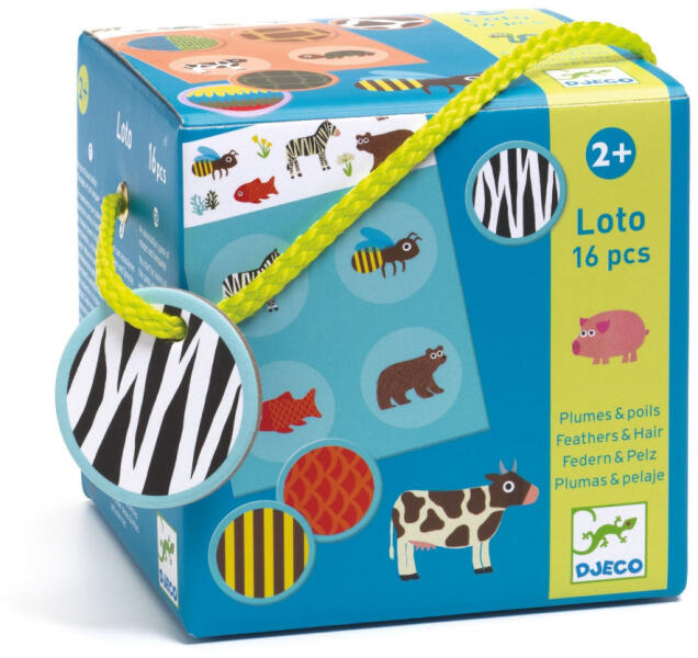 Grafikusok, művészek, feltalálók és tervezők együttes munkája hívja életre a Djeco különleges, ezeregy színű, fejlesztő játékait. Képeslottó játék apróknak és nagyoknak, a Djeco bájos figuráival. Képeslottó játék az állatok és a testfelszínük, bőrük, bundájuk, tollazatuk témában. Ismeretbővítő és memóriajáték egyben, ideális kikapcsolódás a kicsiknek