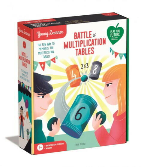 A Clementoni Torpedó társasjátékban a gyerekek a már jól ismert, lövöldözős játékot próbálhatják ki egy nagyon szórakoztató formában: a szorzótábla használatával. Minden játékos elhelyezi a dobozait a táblán, majd a másik fél feladata megtalálni azok helyzetét a koordináták segítségével. Az ellenfél tárgyainak behatárolásához pedig szorzásokat kell elvégez
