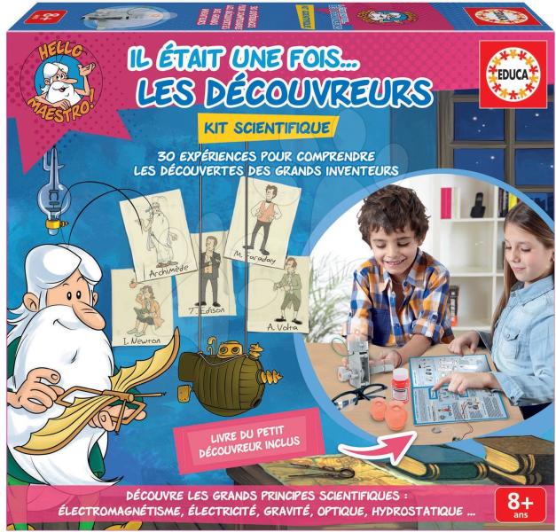Szerezzen örömet gyermekeinek a Hello Maestro! tudományos társasjátékkal a spanyol Educa gyártó műhelyéből. A modern francia nyelvű társasjáték gyerekeknek 8 éves kortól ajánlott. Segítségével a gyerekek 30 különböző tudományos kísérletet végezhetnek el és játékosan megismerhetik a fizika alaptörvényeit. A játékhoz egy kiegészítő készlet tartozik, mely megis