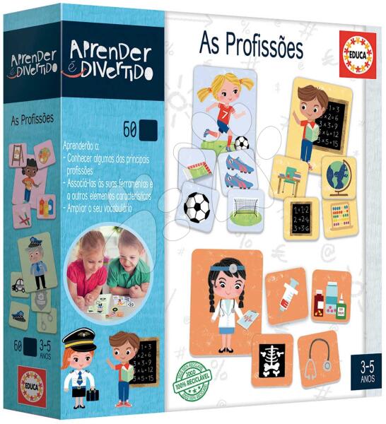 Oktatójáték The Professions a spanyol Educa gyártótól gyerekeknek 3 éves kortól. A portugál nyelvű játék segítségével a csöppségek megismerkednek a szakmákkal. A játék részét többek között 12 db nagy képeskártya teszi ki, ezek különböző szakmákat ábrázolnak. A gyerekek feladata hozzárendelni a kisebb képeskártyákat a megfelelő szakmához . Ez az egyszerű, m