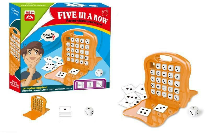 Öt a nyerő társasjáték gyerekeknek Öt a nyerő társasjáték gyerekeknek. A játék elején mind a két játékos húz 1-1 kártyát a megkevert, lefelé fordított pakliból. Az első játékos a kártyáján szereplő sorból egy tetszőleges kockát átlök a másik oldalra, ezt a másik játékos szintén megismétli. Az kap egy pontot, akinek vízszintesen, függőlegesen vagy átlósa