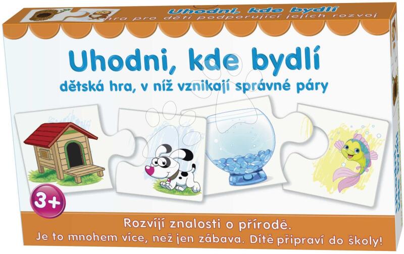 Párosító társasjáték Találd ki hol lakik a neves Dohány gyártó műhelyéből hosszantartó szórakozást nyújt fiúknak és lányoknak már 3 éves kortól. A játék célja a megfelelő képpárok megtalálása , jelen esetben az állatkák és lakhelyük összekapcsolása. Az egyes ábrákkal ellátott fehér kártyák úgy illeszkednek egymásba, mint a puzzle darabjai. A cseh nyelv