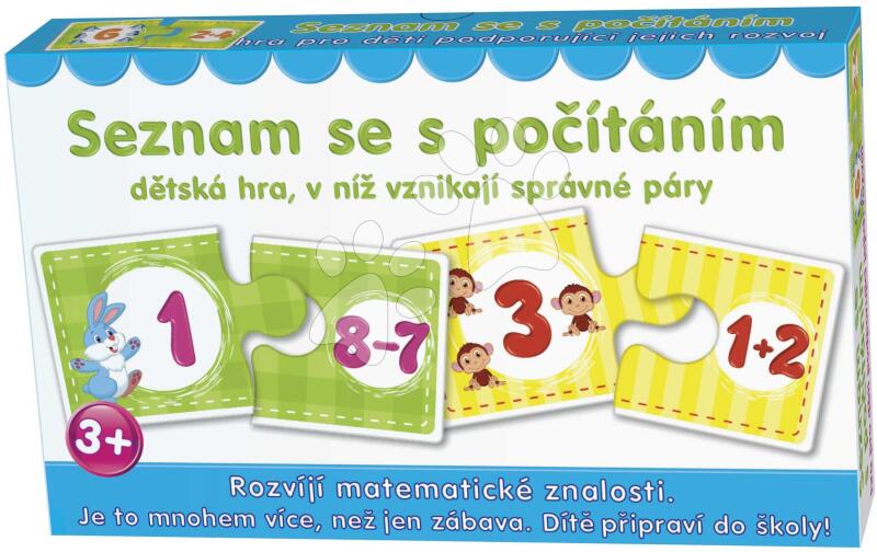 Párosító társasjáték Ismerkedj a számolással a neves Dohány gyártó műhelyéből hosszantartó szórakozást nyújt a gyerekek részére már 3 éves kortól. A játék célja a megfelelő képpárok megtalálása , jelen esetben a megfelelő számpárok és eredmények összekapcsolása. Az egyes állatkás ábrákkal ellátott fehér kártyák úgy illeszkednek egymásba, mint a puzzl