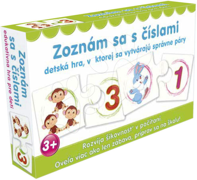 Párosító társasjáték Ismerkedj a számokkal a neves Dohány gyártó műhelyéből hosszantartó szórakozást visz fiúk és lányok életébe már 3 éves kortól. A játék célja a megfelelő képpárok megtalálása , jelen esetben állatok és számok összekapcsolása. Az egyes ábrákkal ellátott fehér kártyák úgy illeszkednek egymásba, mint a puzzle darabjai. Az oktatójáték