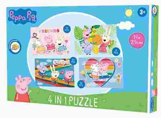 Peppa Pig, Peppa malac puzzle 4 az 1-benAjánlott 3 éves kortól. Mérete: 19x29 cmTartalma:- 1 db 12 db-os puzzle- 1 db 16 db-os puzzle- 1 db 20 db-os puzzle- 1 db 24 db-os puzzle