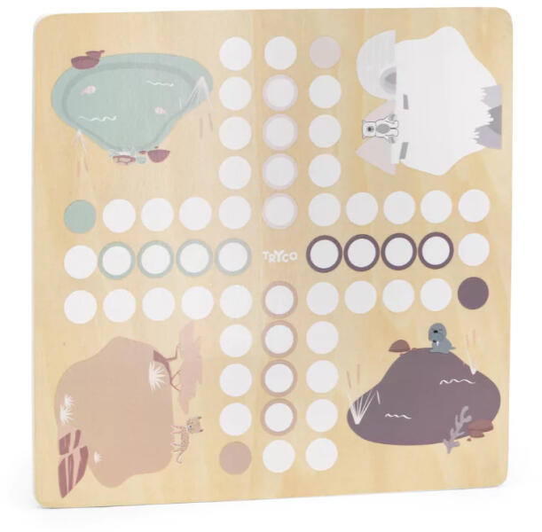 Kétoldalú játéktábla a klasszikus Ki nevet a végén? és a Kigyók és létrák játék Egy régi játék új köntösben, ahogy azt a Trycotól már megszokhattuk, fából. Ez ám a móka! Jegesmedvék, fókák, vízilovak, leopárdok kelnek versenyre ebben a szépen illusztrált játékban.