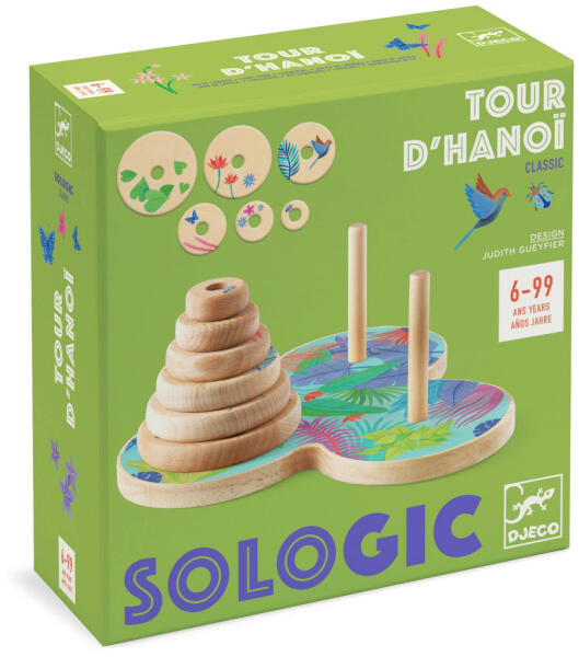 Toronyépítés - Logikai játék - Tour d'Hanoï - DJ00812 Ez egy hagyományos fa játék, ahol a 6 korongot a megfelelő sorrendben kell az utolsó cövekre helyezned! Számtalan megoldási lehetőség közül csak egy működik – nézd meg a mellékelt füzetet. Miért szeretjük ezt a terméket? Fejleszti a türelmet és a logikát. Számtalan lehetséges megoldás, de csak 1 helyes - nézd