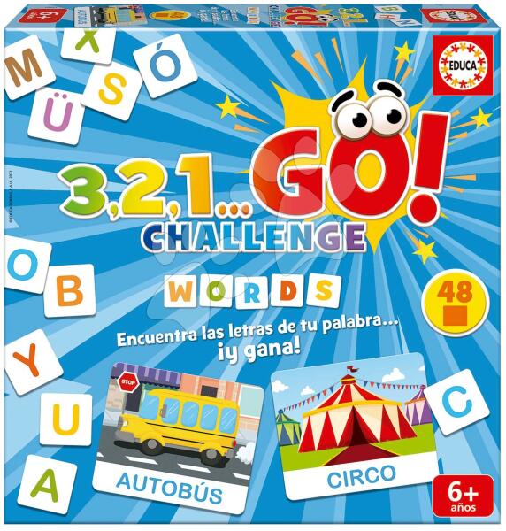 Társasjáték Szavak 3,2, 1... Go! Challange Words a spanyol Educa műhelyéből egy igazán kiváló ajándék fiúknak és lányoknak már 6 éves kortól. A spanyol szójáték 48 kártyalapból áll szavakkal és ábrákkal és 150 színes betűvel. A gyerekek feladata, hogy a lehető leggyorsabban megtalálják és helyesen párosítsák a betűket az ábrákkal, hogy a megfelelő szót kapj