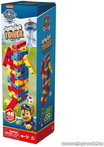 A klasszikus építkező társasjáték felturbózva kedvenc mesehőseiddel, a Mancs őrjárat kutyusaival! A Mancs őrjárat Káosz torony ügyességi játék a jól ismert Jenga játékhoz hasonló elven működik: a cél, hogy minél magasabb tornyot építsenek a játékosok, úgy, hogy az alsóbb szinteken lévő fahasábokat helyezik a torony tetejére, ami egyre ingatagabbá válik. A győz