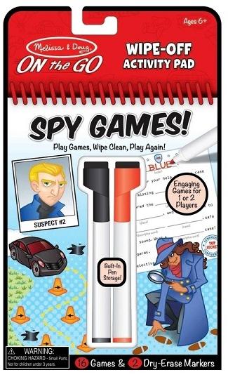 Melissa & Doug On the Go Letörölhető lapok - Kémjáték 16 különböző játékot kínál ez a spirálfüzet, amit akár egyedül csinálsz végig, akár párban, önfeledt játékot biztosít akár útközben is. A két különböző színű toll segítségével megfejthetitek a játékokat, a tollon lévő szivaccsal pedig le lehet törölni, hogy újra és újra lejátszható legyen. H