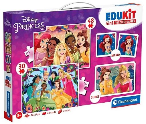 Edukit játékgyűjtemény 4 az 1-ben - Disney hercegnők Disney Princess Kalandozz a Disney hercegnőkkel és a játékgyűjteménnyel! A Clementoni játékokra jellemzően a játékok kiváló minőségűek, erős anyagból készültek, a kirakós elemei pontosan illeszkednek. A szórakozás és a sikerélmény garantált! A játékok nem csak fejlesztik a memóriát, a megfigyelő és koncentr
