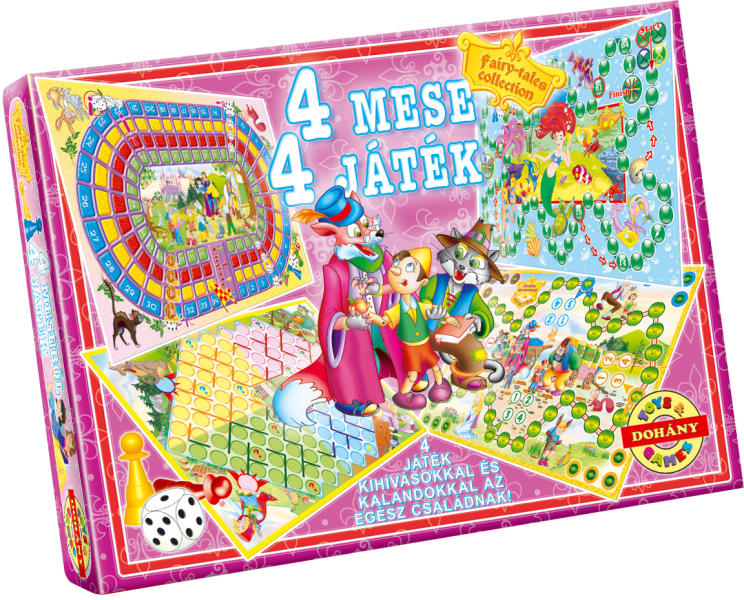 Mesés társasjáték készlet egy csodálatos 4 játékot tartalmazó készlet , amely kisfiúknak és kislányoknak egyaránt alkalmas 3 éves kortól . Található benne 4 játéktábla és figurák Ki nevet a végén és Dámajátékhoz. Minden játéktábla a legnépszerűbb gyerekmesék motívumába hangolt, ezért nagyon vidáman és szórakoztatóan hatnak. Ez a gyermek társasjáték kés