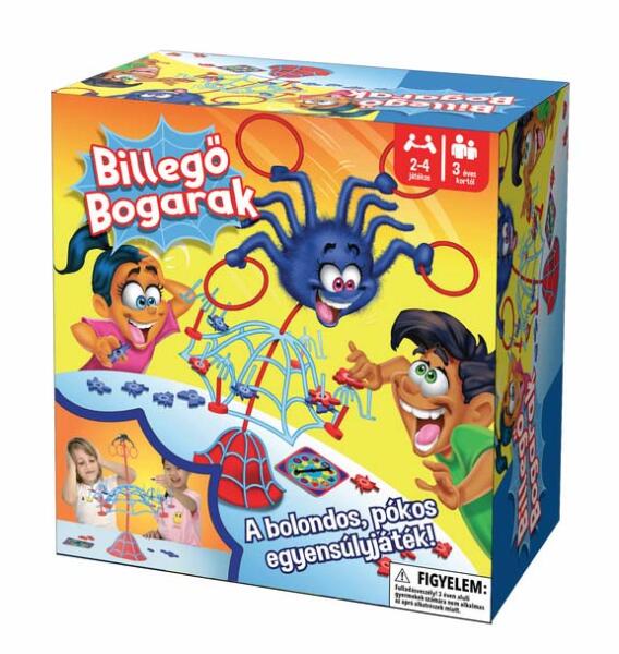 Társasjáték - Billegő bogarak Játékosok száma: 2-4 játékos, Korosztály: 3 éves kortól ajánlott. A játék célja: Helyezd fel az összes bogarad anélkül, hogy ledőlne a pókháló. Ellőkészületek: Építsük fel a nagy pókhálót. Óvatosan helyezzük fel a 4 darab kis hálót a nagy pókháló széleire. A bogarakat válogassuk szét színek szerint. 2 játékos esetén 2-2 sz