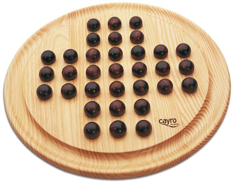 Cayro Solitaire klasszikus stratégiai golyógyűjtő játék 1 vagy 2 személy részére 29 cm átmérőjű natúr fa játék táblával. Egy pasziánsz típusú játék, amely a játék öröméről és a változatosságról szól. A 20 mm-es fa golyók kiváló minőségűek. A remélhetőleg nagyon sok golyó tárolására szolgáló peremvájat rendkívül praktikus és funkcionális játék