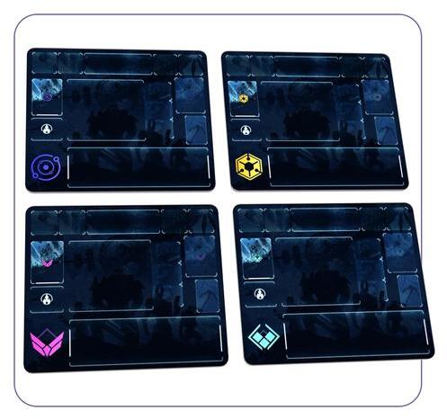Négy egyedi playmat ből álló készlet, amely segít rendszerezni a játékelemeiteket. Megkönnyíti a különböző paklik és tartozékok elrendezését, amelyeknek kéznél kell lenniük az ISS Vanguard játszmák során! Minden egyes részleg egyedi megjelenést kap. Minden playmat legalább 410x320mm-es , varrott szélekkel.