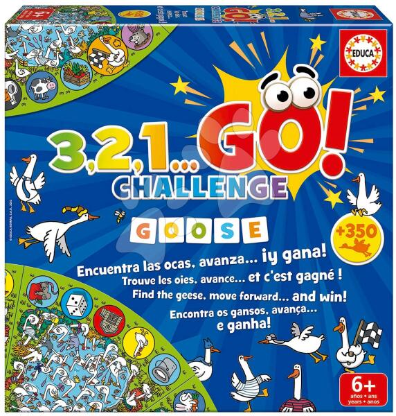 Társasjáték Challenge Goose a spanyol Educa műhelyéből egy igazán kiváló játék kicsiknek és nagyoknak egyaránt. A játékfelület egy forgatható nyíllal ellátott központi részből és 8 összekapcsolható periférikus részből áll. A játékfelületen különböző libaképek találhatók, a gyerekek feladata a homokóra által mért időhatáron belül megtalálni a megfelelő