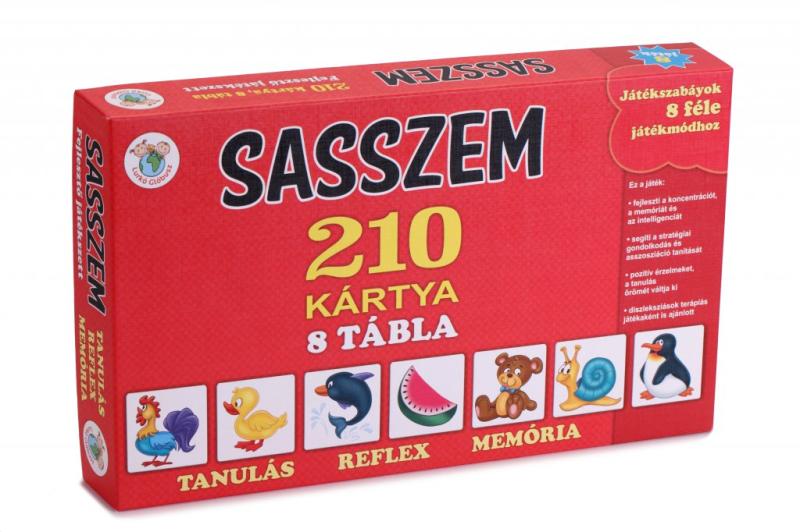 Mit kell tudni a játékról?Micsoda kavalkád?! Ki lesz a sasszem, aki leggyorsabban találja meg az ábrákat? Bemelegítésként játszhatunk Képes bingót a játéktáblák bingós oldalával, ezután a táblákat megfordítva jöhet a Sasszem játék valamelyik formája. A 210 db kártya ábrái mind megtalálhatóak valahol valamelyik Sasszem játéktáblán, a Bingó oldalakon kevesebb áb