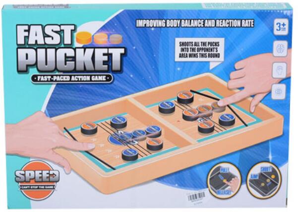 Speed Sling Puck ügyességi társasjáték Hivatalos magyarországi forgalmazótól. Leírás: A Sling Puck remek ügyességi játék, aminek a legnagyobb erőssége az egyszerűsége és a gyorsasága, ami miatt remek választás és egyúttal nagyszerű kikapcsolódás is. A fakeretes játéktábla két részre van osztva, középen egy kis kapuval kialakított elválasztóval. Mindkét játék