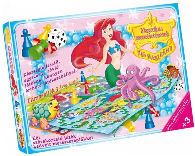 Társasjáték gyerekeknek Kis hableány az európai Dohány gyártó terméke. Játékszabályai nagyon egyszerűek , gyorsan elsajátíthatók. Ilyen típusú gyerek társasjátékok fejlesztik a taktikai gondolkodást és egészséges versengést . A csomagolásban minden megtalálható, ami a játékhoz szükséges – bábuk, dobókocka és játékmező. Gyerek társasjáték Kis hableány eg