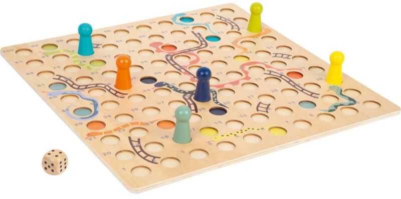 Small foot 11785 XL méretű Kígyók és létrák társasjáték fatáblán. Kígyók és létrák társasjáték nagy formátumban! Ezzel a klasszikus fából készült játékkal az a cél, hogy Te legyél az első játékos, aki "felmászik" a létrán, hogy elérje a 100-as helyet. De légy óvatos! Ha egy kígyóhelyen landolsz, visszacsúszol! Az extra nagy játéktér és az extra nagy já