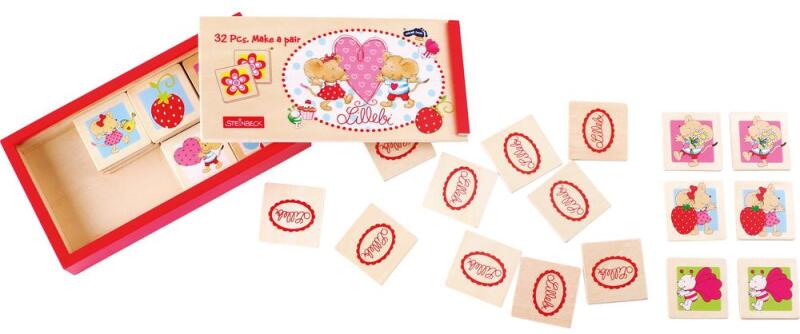 Lillebi, a kedves kisegér és barátai láthatók ezen a memóriajátékon. A kisgyermekek körében népszerű mesefigura díszíti a masszív falapocskákat. Máris örömmel kezdhetünk neki a párosító játék nak. A társasjáték közben fejlődik a szókincs és a figyelem. A memóriajáték szabálya egyszerű: fordítsuk fel a lapokat, jegyezzük meg mindegyiknek a helyét, és ha egyf