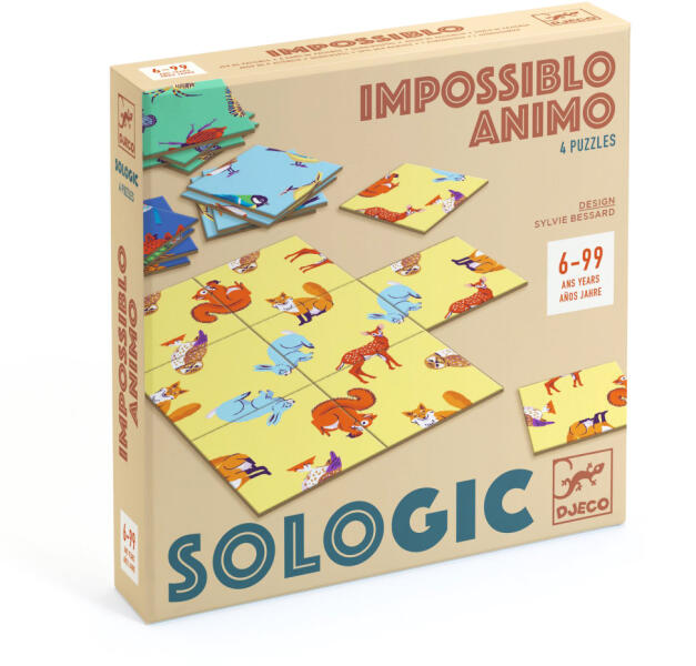 Mit kell tudni a játékról? Impossiblo Animo - Logikai kirakós játék Állatos témájú logikai kirakós játék a Djeco márkától 6 éves kortól, mellyel 4 különböző puzzle rakható ki 3x3-as elrendezésben a szabályt betartva, vagyis csak a kép szélén lehetnek félbevágva a motívumok. A logikai puzzle játékban 4 különböző, állatokat ábrázoló képet lehet kirakni egyen