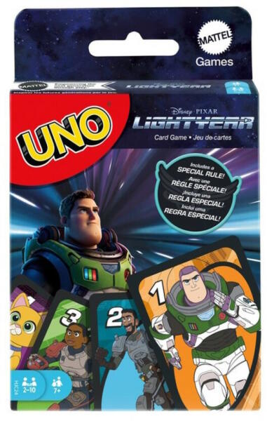 A népszerű UNO-kártyajáték Disney kiadása Buzz LightYear segítségével most a végtelenbe és tovább repít! A játék célja, hogy a játékosok mindig a pakli tetején lévő kártyához passzoló lapot dobva elsőként szabaduljanak meg az összes kártyájuktól. Ez a kiadás egy különleges szabállyal teszi még izgalmasabbá a megszokott Uno-élményt! A speciális, hipersebesség