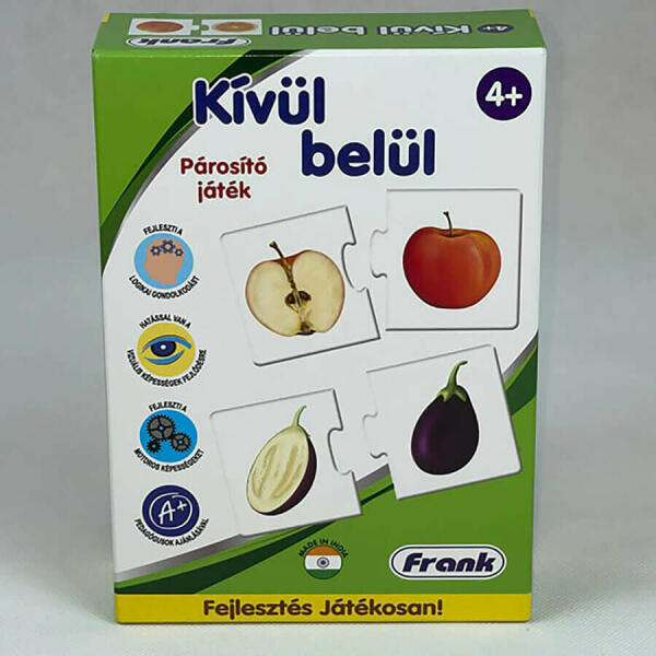 Mit kell tudni a játékról?Ennek a párosító játéknak a segítségével a gyermekek megfigyelhetik és összehasonlíthatják különféle zöldségek és gyümölcsök egész illetve félbevágott alakját. Ha a gyermek helyesen rakja össze a párokat, akkor a két kép pontosan illeszkedik egymáshoz, így a gyermek önmagát tudja ellenőrizni. Az ismeret- és szókincsbővítés mellett