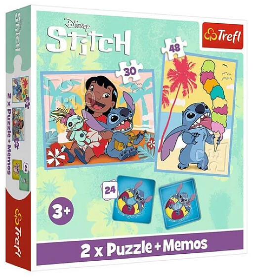 TREFL Lilo és Stitch puzzle és memóriajáték 2in1 Kirakó és memória játék 2 az 1-ben A Disney Lilo és Stitch című mese megunhatatlan karakterei mindig újabb és újabb játékokkal örvendeztetik meg kis rajongóikat. A két főszereplő ezúttal egy játékszettel biztosít a lányoknak kellemes időtöltést, miközben fejlesztik a memóriájukat, a képlátásukat, a finom-motoros