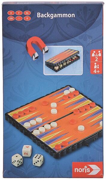 Noris Mágneses társasjáték - Backgammon Az ostábla játék, más néven Backgammon egy olyan formát kapott, amelyet akár egy hosszú, zötykölődő utazás során is elő lehet venni unaloműzőnek. A mágneses táblán stabilan megállnak a bábuk, és a játék végeztével az összehajtható játéktáblában lehet tárolni a kisebb alkatrészeket. A játékot ketten játsszák egy 24 m