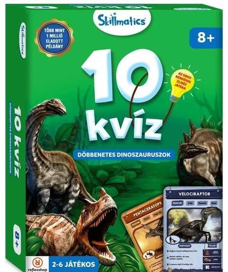 Repülj vissza az időben, és találkozz a Föld leglenyűgözőbb teremtményeivel! Ebben a játékban felfedezheted a dínók varázslatos világát. Tedd fel a legjobb kérdéseket és találd ki te a leggyorsabban a megfejtést! Ez a dinoszaurusz növényevő? Hatamas volt, mint a T. rex, vagy kisebb? A 10 kvíz - Döbbenetes dinoszauruszok egy okos családi társasjáték , amit kompakt mér