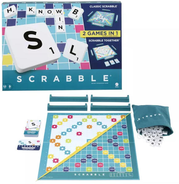 A legjobb játékok azonban nemcsak szórakoztatnak, de tanítanak is. A Scrabble Original és társasjáték 2 játék 1-ben. Az eredeti változatban egy igazi fejlesztő kaland, M-Ó-K-A a javából, egy klasszikus társasjáték! A keresztrejtvényhez hasonlóan egymáshoz kapcsolódó szavak alkotása a cél, ahol minden szó kirakásával pontokat gyűjthettek. Aki a legtöbb pontot éri el,